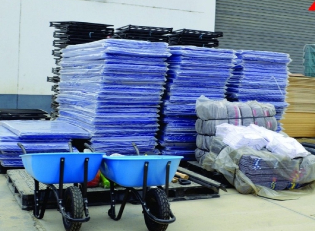 El lote entregado incluyó 280 planchas de triplay, 81 camas, colchones, frazadas y sábanas respectivamente, así como menaje diverso y herramientas como palanas, picos, barretas y carretillas para labores comunales.