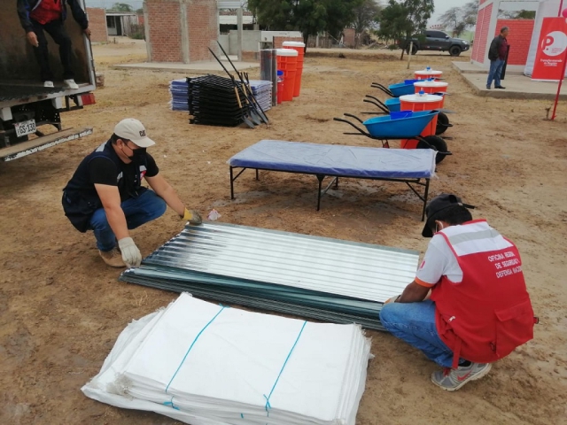 El jefe de la ORSYDN y Coordinador del COER, Bédher Zurita Lucumi, informó que el GR ha adquirido para acciones de la gestión de riesgo de desastres, 1500 calaminas grandes y 3,500 chicas, 1350 planchas de triplay y 1000 listones, además de herramientas entre las que se cuentan 400 picos,400 palanas, 200 carretillas y 200 barretas.