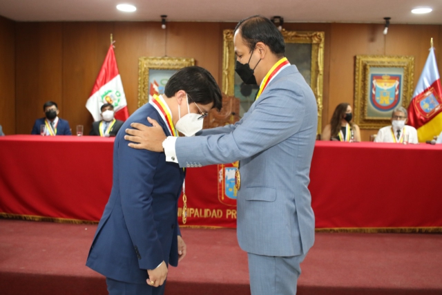 El alcalde de Piura, Juan José Díaz Dios, fue el encargo de entregar la máxima distinción cívica, en sesión solemne que tuvo lugar en el salón de actos “Almirante Miguel Grau” de la comuna piurana, con asistencia de autoridades y público piurano.