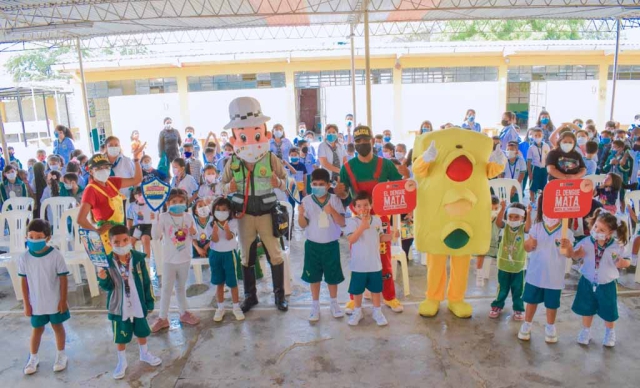 Durante la ceremonia, los estudiantes participaron de una sesión demostrativa de lavado de manos y un show educativo por parte de la Policía Nacional del Perú.
