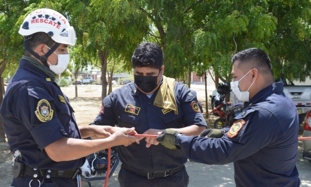 En las instalaciones del Centro de Operaciones de Emergencia Regional, los participantes recibieron los conocimientos de los instructores de la Policía Nacional, en el manejo de los distintos tipos de cuerdas que se usan en una acción de rescate de personas, tras la ocurrencia de una emergencia o desastre; de tal modo que se dé la participación de un equipo entrenado usando el material adecuado.
