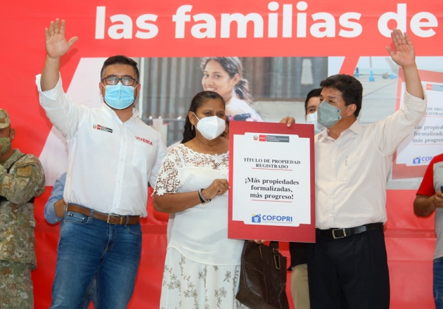 Gracias al trabajo del Organismo de Formalización de la Propiedad Informal (COFOPRI), entidad adscrita al Ministerio de Vivienda, Construcción y Saneamiento (MVCS), las familias se convierten en propietarios con los títulos inscritos y consiguen seguridad jurídica sobre su lote con capacidad de acceder a créditos para construir o mejorar sus viviendas, obtener un posible emprendimiento económico para ampliar sus negocios y dejar legalmente en herencia su propiedad.