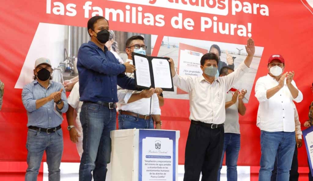 “No hemos venido acá sin otro afán que no sea servir al país. No podía dar la espalda a este pueblo que clama por agua potable y alcantarillado. Por eso hoy damos un punto de partida para sacar adelante este proyecto a favor de los asentamientos humanos de Piura y Castilla”, destacó el presidente Pedro Castillo.