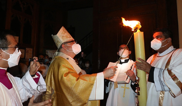 ERP. En la Basílica Catedral de nuestra Ciudad, los fieles piuranos se reunieron, con profundo gozo, para celebrar la Solemne Vigilia Pascual, en la quese conmemora la Gloriosa Resurrección de Cristo y su victoria sobre el pecado y la muerte. El Arzobispo Metropolitano, Monseñor José Antonio Eguren Anselmi, S.C.V., exhortó a los presentes, durante la solemne celebración eucarística, a dejarse tocar por la buena noticia de la Resurrección del Señor, para así ser testigos de Cristo y trabajar por un Perú de justicia y paz.