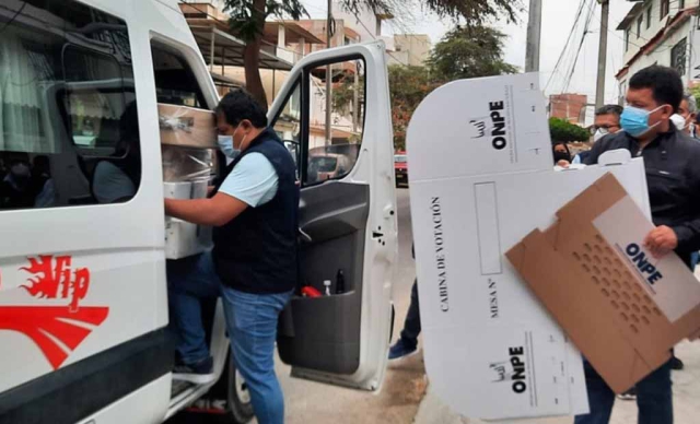 El material electoral ha sido enviado en vehículos de transporte debidamente custodiados por dos efectivos de la Policía Nacional del Perú, un personal de ONPE y un representante del Jurado Nacional de Elecciones.