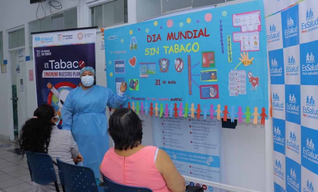 ERP. La Red Asistencial Piura realizó actividades informativas en sus diferentes establecimientos de salud, en el marco del Día Mundial Sin Tabaco, que se conmemora cada 31 de mayo, a fin de sensibilizar a las personas sobre los riesgos que estos ocasionan para la salud.