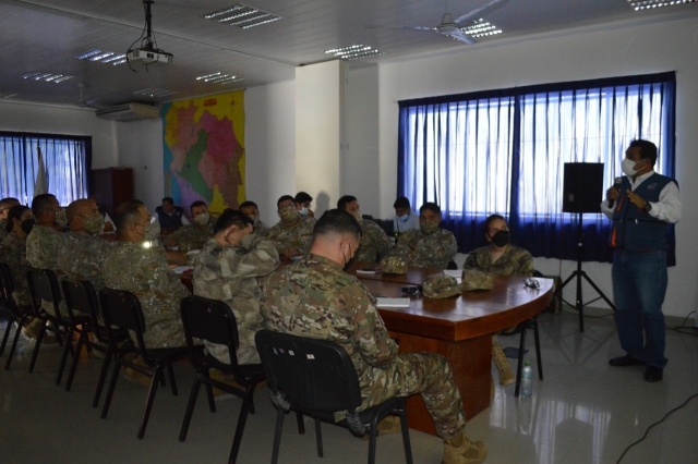 Los oficiales de esta Escuela (ESCOFFAA) recibieron, por parte de los profesionales del Centro de Operaciones de Emergencia Regional, exposiciones detalladas referidas a la aplicación de y el manejo de la gestión de riesgo de desastres en la región, la capacidad de respuesta ante las emergencias, el plan de capacitación comunitaria con énfasis en la prevención y el funcionamiento del COER.