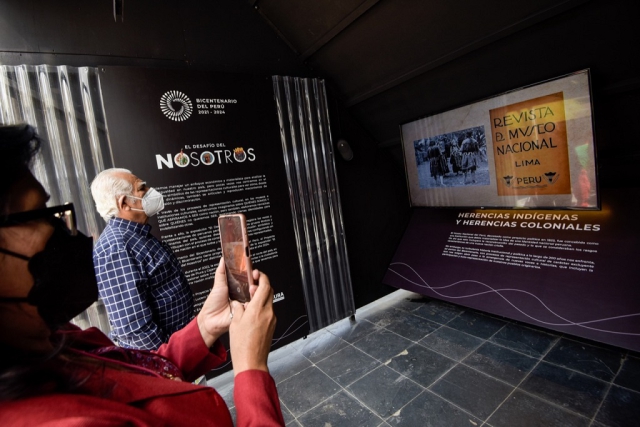 La exposición presencial El Desafío del Nosotros también se encuentra disponible en formato digital en https://bicentenario.gob.pe/exposiciones/desafio/ .