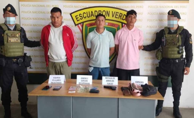 ERP. Luis Miguel Valencia Godos (26), Benjamín Rojas Peña (19) y Antony Josué García Jiménez (26) serán internados preventivamente 09 meses en el penal de Piura tras ser intervenidos luego de presuntamente haber asaltado a unos estudiantes de la Escuela de la PNP.