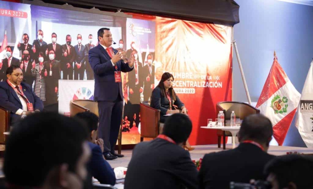 ERP. En el segundo y último día de la V Cumbre de la Descentralización, el gobernador regional, Servando García Correa comprometió a todos los gobernadores del país, e integrantes de la Asamblea Nacional de Gobiernos Regionales, a no desistir en exigir la masificación de gas e insistir en la descentralización de recursos que permitan el desarrollo del Perú.