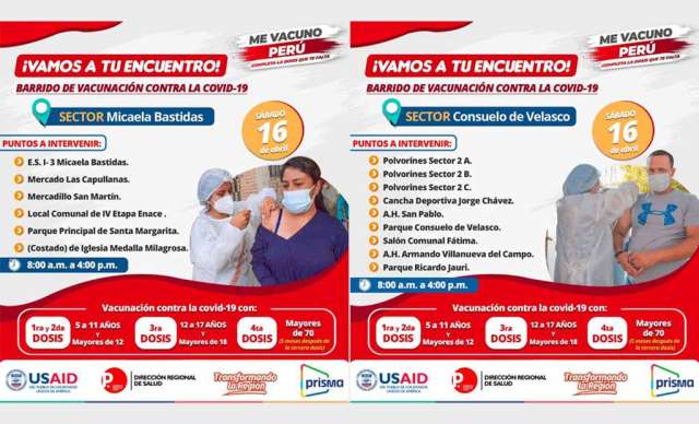 ERP. Este 16 de abril, las brigadas de salud realizarán un barrido de vacunación Covid-19 en los sectores de Consuelo de Velasco y Micaela Bastidas para proteger a los vecinos, en la ciudad de Piura.