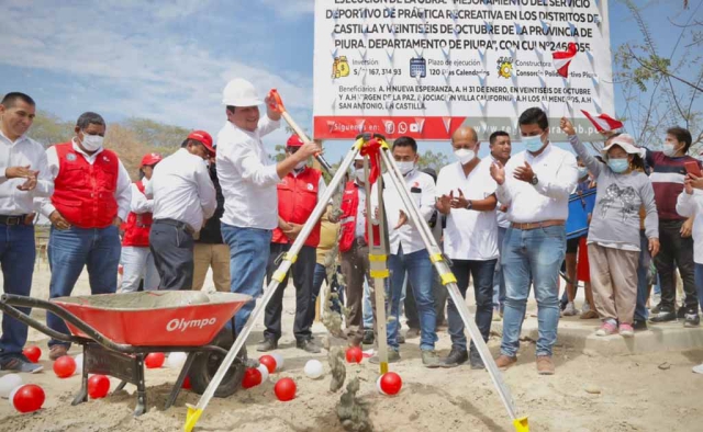 ERP. En una emotiva ceremonia, el gobernador regional de Piura, Servando García Correa junto al gerente regional de Infraestructura, Wilmer Vise Ruíz y diversos funcionarios, colocó la primera piedra para la construcción de un moderno polideportivo en el A.H. Los Almendros, en Castilla, con ello, por primera vez, niños y jóvenes de esta parte de la región podrán acceder a una óptima infraestructura deportiva.
