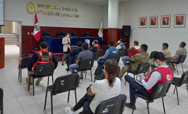 ERP. En el auditorio de la sede principal de la Fiscalía de Piura, se llevó a cabo la 7ma reunión de coordinación con las instituciones de Primera Respuesta ante desastres, durante la cual los participantes recibieron también capacitación por parte de personal fiscal.
