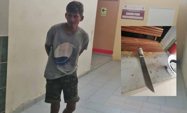 ERP. Agentes del Serenazgo de Piura y la Policía Nacional del Perú, durante un patrullaje en la Urbanización Las Mercedes, intervinieron a un sujeto por el presunto robo en agravio de una vecina, a quien amenazó con un machete para apropiarse de sus pertenencias.