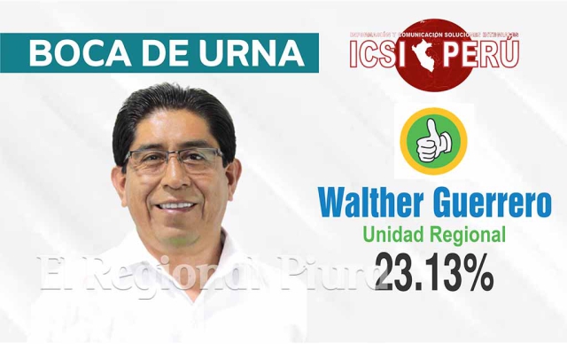 ERP. La encuestadora ICSI Perú, realizó la encuesta a ‘Boca de urna’ cuyos resultados extraoficiales indican que el candidato Walther Guerrero de Unidad Regional es el virtual ganador en el distrito de Castilla de la contienda electoral desarrollada el día de hoy. De confirmarse con la votación oficial asumirá el mandato el próximo mes de enero del 2023.
