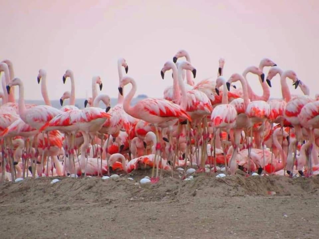 Los flamencos son aves migratorias, se alimentan de pequeños crustáceos que viven en los humedales, muchos de los cuales le dan la coloración rosada de sus plumajes, el pico en forma cucharón les ayuda a filtrar sus alimentos.