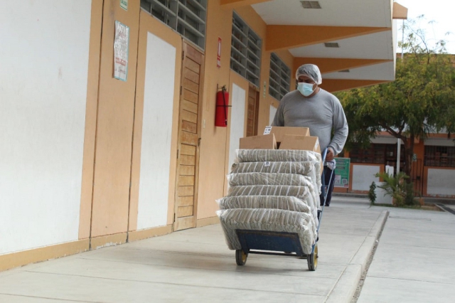 La distribución de los alimentos se inició el 24 de octubre y son los Comités de Alimentación Escolar (CAE) los responsables de recibir y almacenar los alimentos en condiciones que garanticen su calidad e inocuidad, colocándolos en espacios limpios, iluminados y ventilados, además de usar mesas o parihuelas para evitar el contacto con el suelo.