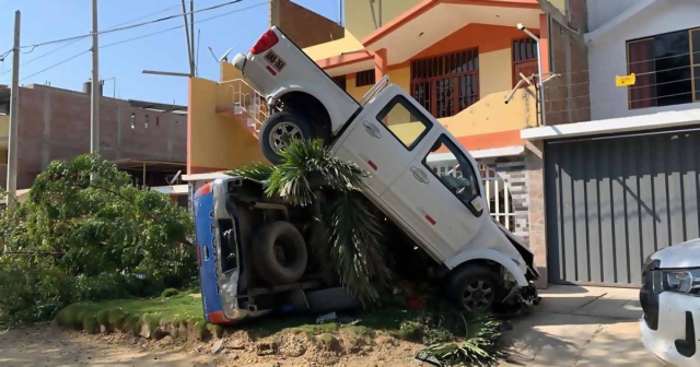 ERP. Esta madrugada una camioneta chocó contra otra que se encontraba estacionada en la avenida Sullana, en la urbanización Avifap en la ciudad de Piura. Tras el fuerte impacto hizo que una de ellas quede encima de la otra.