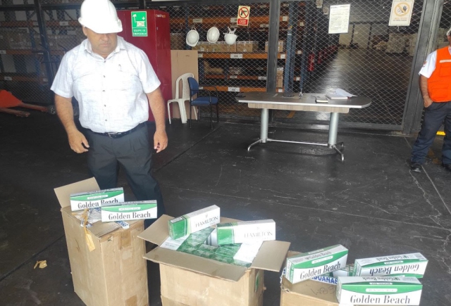 ERP. La lucha tenaz en contra del contrabando y comercialización indebida, se repite con éxito. Más de 30 mil cigarrillos que iban a ser distribuidos y comercializados durante las fiestas de Navidad incautaron agentes de la Policía Nacional en los almacenes de una empresa de transportes donde habían llegado como encomienda.