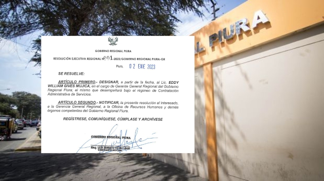ERP. Eddy William Gives Mujica, quien es docente de la Universidad Nacional de Piura, es el flamante Gerente General Regional de la Región Piura, según se oficializó con la primera resolución emitida por el Gobernador Regional Luis Neyra León. El designado para el máximo cargo, es Doctor en Contabilidad y Finanzas, además fue vicepresidente académico de la Universidad Nacional Tecnológica de Lima Sur.