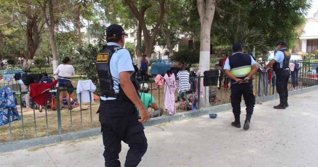 ERP. Personal de Serenazgo de Piura de la móvil 17 acudió al parque Infantil Miguel Cortés para erradicar a un grupo de extranjeros que se habían apostado en diferentes puntos donde cocinaban, lavaban y dormían invadiendo el lugar.