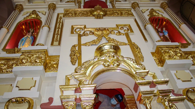 ERP. El templo San Juan Bautista de Catacaos, se luce ante los fieles, con un Altar Mayor, que destaca aún más, el sentido teológico como el arte con el cual fue creado. El Pbtro. Álvaro Paul Otero Gonzáles, recientemente llegado como párroco a Catacaos, se planteó, apenas pisó la ciudad, cuya Semana Santa, es “Patrimonio Cultural de la Nación”, realizar la restauración del altar mayor.