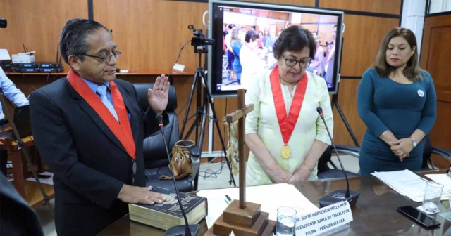 La autoridad judicial se mostró complacido por la elección y agradeció a los miembros de la Comisión por su preferencia, y a continuación, fue juramentado en el cargo, durante el presente año, por la Dra. Sofía Milla Meza, representante de la Presidencia de la Junta de Fiscales Superiores de Piura.