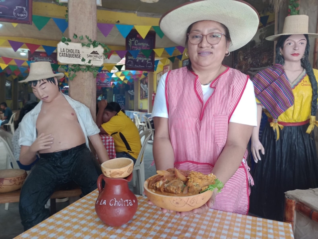 En “La cholita cataquense”, además preparan sabrosos sudados, ceviches espectaculares, rondas criollas donde destaca la especial de casa que suma seco de chabelo, majao de yuca, carne seca, carne aliñada, patacones, chifles, zarza criolla.