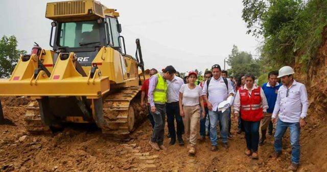 La ministra de Transportes y Comunicaciones, Paola Lazarte, el alcalde de Salitral, Elkin Jáuregui, y representantes de la empresa concesionaria de la carretera recorrieron la zona y verificaron que los trabajos efectuados lograron la recuperación del pase vehicular.