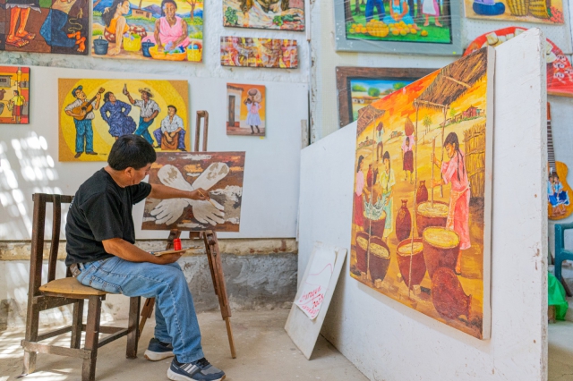 En la calle Comercio, de Catacaos número 740, en dónde en décadas pasadas funcionaba los almacenes de la Desmotadora de Algodón de la familia Romero, allí trabajan, reciben visitas y exhiben sus obras, los Artistas Plásticos de este distrito.