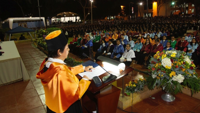 La vicerrectora Susana Vegas, en representación del rector, Antonio Abruña, felicitó a los flamantes graduados y a sus familiares, a quienes agradeció haber confiado a la UDEP la educación y formación de sus hijos.