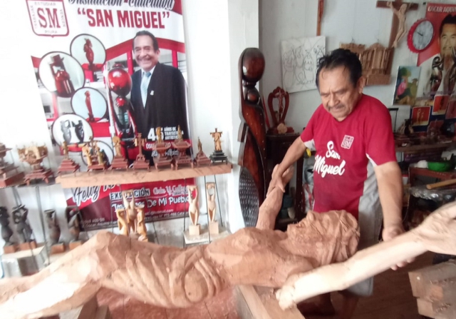 En su taller, rodeado de otras imágenes y alegorías diversas, no hay pausa y lentamente el arte de un gran maestro va tomando forma y empieza a mostrarse.
