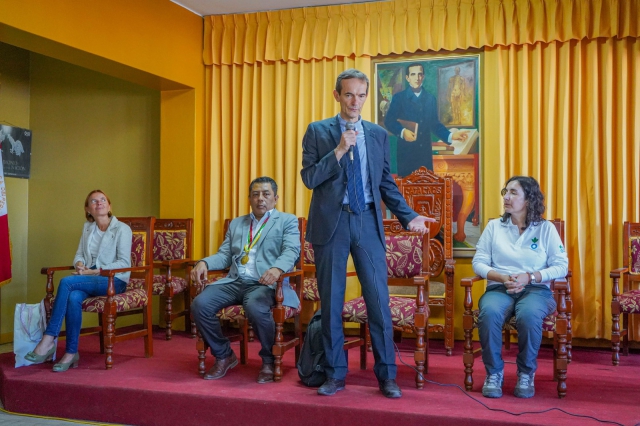 ERP. El embajador de Francia, Marc Giacomini, visitó los distritos de Cura Mori y Catacaos, donde informó que su gobierno estará financiando la entrega de 96 mil raciones, además de kits de salud y cocinas que serán asignadas a la población local, frente a la crítica situación que viven después del evento lluvioso que los afectó seriamente.