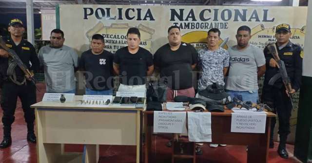 ERP. Marcos Viñas Lozano (39), Edgar Manuel Zapata Dioses (44), César Martín Lozada Seminario (32), Jhon Efrain Pulache Zeta (24), Michael Steven Morales Ato (23) serán internados preventivamente 9 meses en el penal de Piura tras ser intervenidos, en una vía de acceso que conduce al Caserío Santa Rosa de Curvan - Tambogrande, con armas de fuego y municiones sin la licencia respectiva.