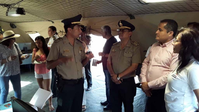 ERP. Luego se trasladará a otros sectores. La Policía Nacional del Perú instaló esta tarde una comisaría móvil que funcionará las 24 horas del día, donde la población podrá sentar denuncias y desde donde se planificarán patrullajes e intervenciones policiales.