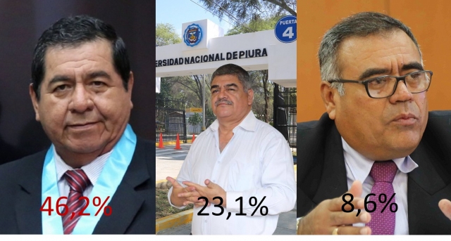 ERP. El candidato oficialista Santos Leandro Montaño y el opositor Segundo Dioses Zárate, habrían obtenido la más alta votación relativa en el proceso de docentes para elegir al nuevo rector y vicerrectores de la Universidad Nacional de Piura, según la encuestadora ICSI Perú que dirige el Lic. Mauro Vegas Carmén. De acuerdo a los resultados extraoficiales del sondeo de opinión el primero logró el 46,2 % de los votos y el segundo el 23,1%.