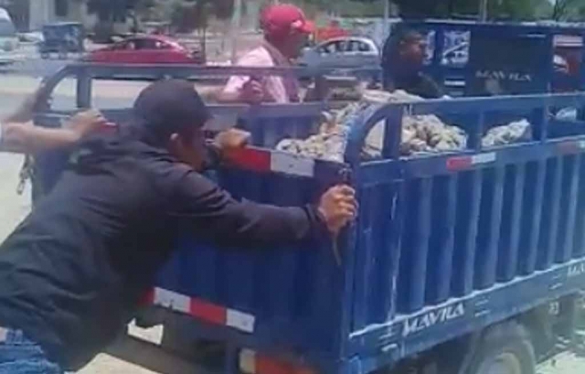ERP. Personal de Fiscalización y Serenazgo intervinieron esta mañana una moto-furgón en los precisos momentos que arrojaba desmonte en un descampado de la urbanización El Bosque, en la prolongación de la avenida Independencia.