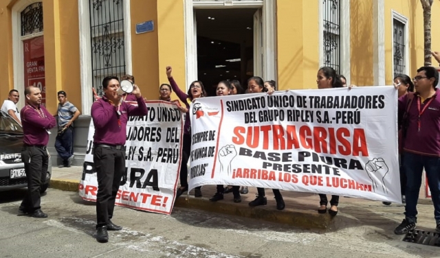 ERP. Una movilización de protesta organizada por el sindicato Sutragrisa trajo consigo la reacción de la empresa Ripley que funciona en la ciudad de Piura, la cual en Comunicado alcanzado a este medio precisa que “(…) es una organización respetuosa de las normas laborales, enfocada en el desarrollo y bienestar de sus colaboradores”.
