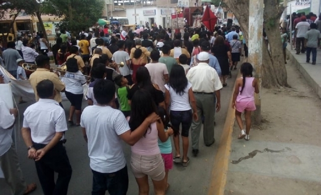 ERP. El cielo cubierto de nubes, que oscureció la tarde en Catacaos, no fue un obstáculo para que el pueblo se volcara a recibir a nuestra Madre de la Virgen de Las Mercedes, que desde Paita, llegó a presidir la Misa de Acción de Gracias, por el primer año de la denominación, “Semana Santa Catacaos: Patrimonio Cultural de la nación.