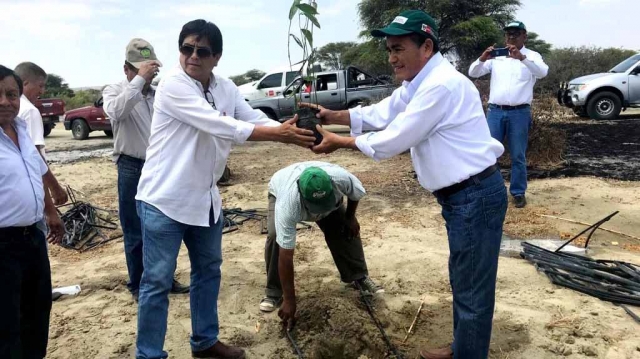 ERP. En la Unidad Comunal de Producción Rivas More, Canal Palo Parado de la jurisdicción de la Junta de Usuarios del Bajo y Medio Piura, se realizó la siembra demostrativa de 50 plantones de bambú con sistema de riego tecnificado.