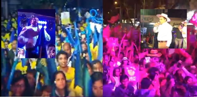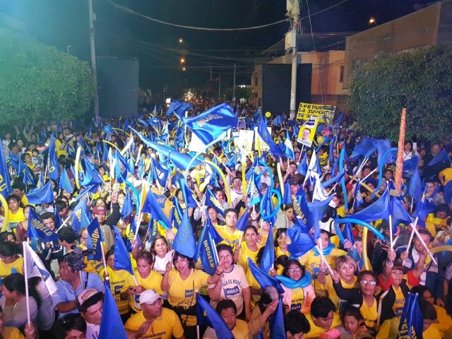 ERP. No se guardaron absolutamente nada para demostrar que son los movimientos regionales con más alto respaldo en Piura. Modelo con Leonidas Huayama Neira y Santiago Paz López de Región para Todos, realizaron concentraciones públicas como actividad de cierre de campaña. Música, baile, discursos y gritos de triunfo fueron características comunes.
