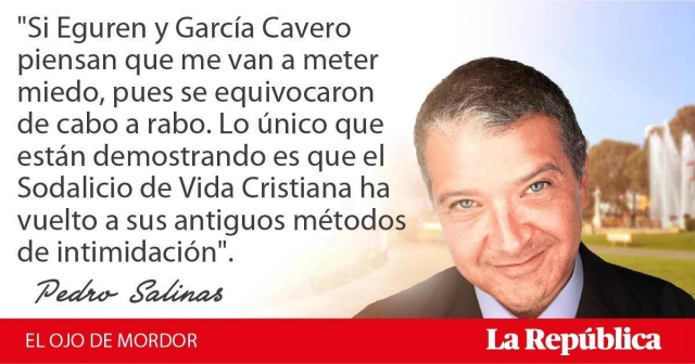 ERP. El periodista peruano Pedro Salinas, quien ha sido querellado por monseñor José Antonio Eguren Anselmi, sigue exponiendo respecto al caso y en esta oportunidad lo hizo desde una columna del Diario La República. En ella, cuestiona no solo al obispo sodálite, sino igualmente al abogado el Dr. Percy García Cavero, quien firma la denuncia penal.