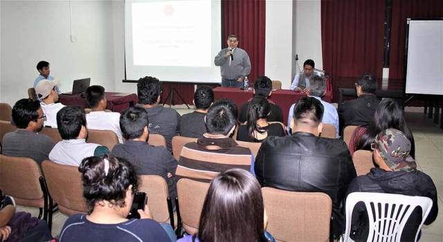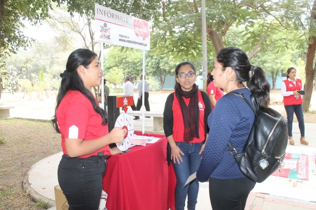 ERP. Con la finalidad de que los universitarios emitan un voto consciente e informado, los estudiantes de la Universidad Nacional de Piura (UNP) recibieron del Módulo Itinerante “Voto Informado” del Jurado Nacional de Elecciones (JNE) información electoral y democrática, el 5 de julio de 2018.