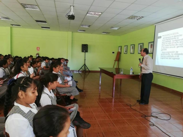 ERP. Uno de los problemas importantes, es el de violencia y en tal sentido, se requiere que exista una formación en todos los estamentos como medida de prevención. El juez del Juzgado Penal Colegiado Permanente Supraprovincial de Piura, Rolando Sicha Navarro, fue invitado a la I.E.P. Niño Jesús de Praga de Castilla para explicarles a las alumnas de dicha institución cómo deben actuar frente a algún caso de violencia familiar.