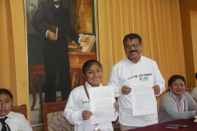 ERP. Convertir a sus instituciones en aliados estratégicos y ayudar a reducir la violencia en las familias y en la escuela de Pedregal Grande fue el principal acuerdo al que llegaron ayer el alcalde de Catacaos, Juan Francisco Cieza Sánchez y la alcaldesa escolar de la institución educativa Genaro Martínez, Mayra Vílchez Tezén (14) a través de la suscripción de un acuerdo conjunto.