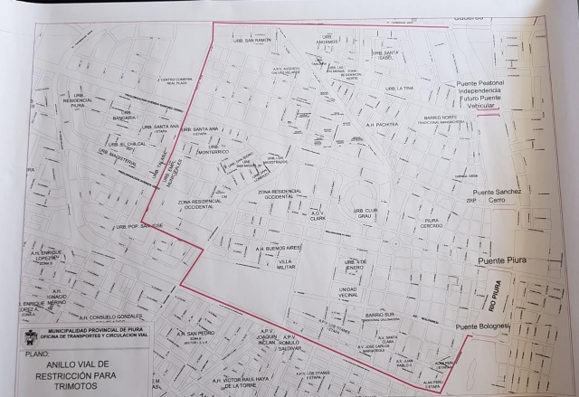 ERP. Con el propósito de tener una ordenanza de consenso, la Comisión de Transportes de la Municipalidad de Piura, acordó convocar a especialistas de la Universidad Nacional de Piura, Universidad de Piura, Colegio de Ingenieros del Perú y los dos gremios de mototaxistas de esta ciudad, para que se pronuncien respecto al proyecto para establecer un nuevo anillo vial que regule las zonas permitidas para unidades vehiculares menores.
