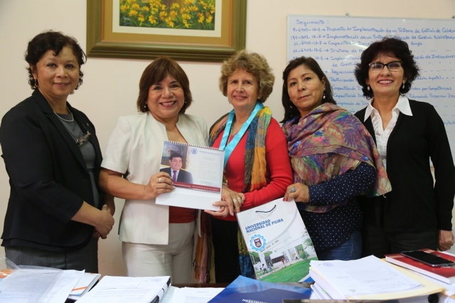 ERP. Ana Olga Restrepo Sierra, Coordinadora de la Asociación de Universidades del Sur del Ecuador y Norte del Perú (AUSENP) visitó la Universidad Nacional de Piura (UNP) para establecer estrategias para reactivar esta institución. Se reunió con la Dra. Yojani Abad Sullón, Vicerrectora Académica y la Dra. Delma Flores Farfán, Jefa de la Oficina Central de Cooperación Técnica de esta Universidad el 3 de agosto de 2017.