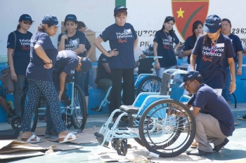 Personas con discapacidad reciben sillas de ruedas de voluntarios de Telefónica