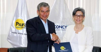 Piura. El gobernador regional, Ing. Reynaldo Hilbck Guzmán y la presidenta del Consejo Nacional de Ciencia Tecnología e Innovación Tecnológica (Concytec), Dra. Gisella Orjeda Fernández, firmaron el Convenio Marco Interinstitucional para promover la descentralización de actividades de ciencia, tecnología e innovación en toda la región.