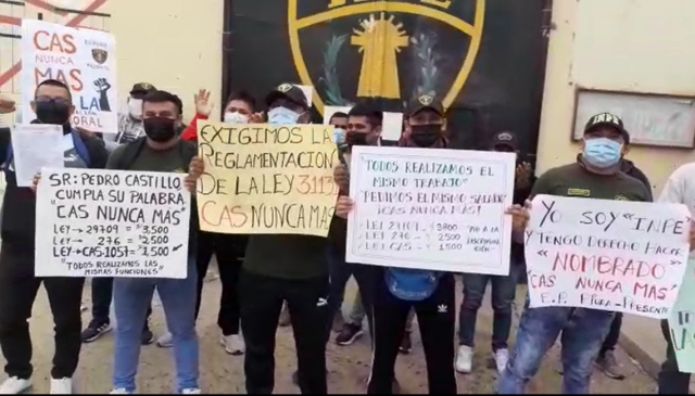 ERP. Un grupo de trabajadores del Instituto Nacional Penitenciario del penal exrío Seco, de la ciudad de Piura, salieron a los exteriores del indicado local para realizar un acto de protesta, reclamando el nombramiento en el cargo que ocupan y sobre todo, eliminar de una vez por todas los contratos administrativos de servicios, los cuales reciben una remuneración mensual ínfima.